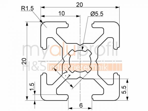 | Aluminiumprofil 20x20 Nut 6 B-Typ Schwarz | Länge: 500 mm | 4x |