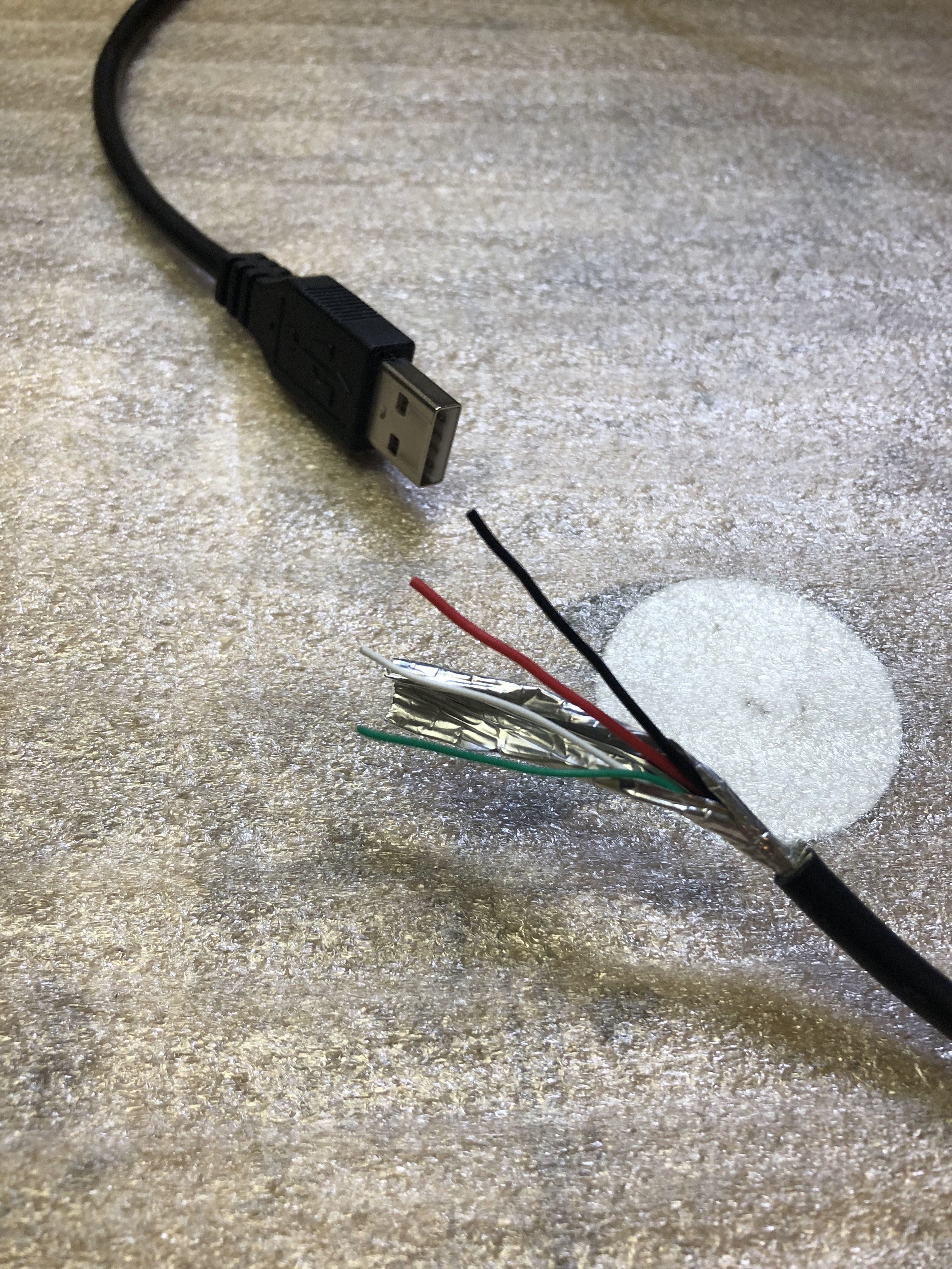 Um ein 5 Volt DC Relais zu schaslten kann der Strom eines USB-Anschlusses der PS4 verwendet werden. Hierzu muss der USB-B-Anschluss gekappt und die einzelnen Kabel freigelegt werden.