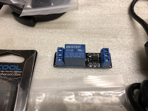 Die Kühlung der PS4 funktioniert über eine externe Wasserpunmpe und drei Lüfter, welche die Kühlflüssigkeit wieder runterkühlen. Diese werden über ein externes Netzteil betrieben. Damit der Kühlkreislauf automatisch mit der PS4 startet habe ich ein Relais verwendet.