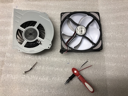 Da ich den Kühler aber schon gekauft und nicht zurückgeben wollte musste ich die PS4 etwas modifizieren und den Standardlüfter austauschen.